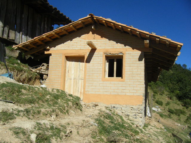 Once the money was in place, the project entered the construction phase. Using 30x40 blocks of adobe, earth, stones, wood, a minimal amount of cement for foundation work, and the guidance of the architects, the people of Cuacuila slowly but surely began building their homes of the future. Although generally all the same size, each person was given enough flexibility and freedom as to the layout of the rooms, allowing for a good deal of individuality to shine through. The finished product has a price tag of roughly 40,000 pesos, just under 3,300 dollars. This modest sum of money is enough for 4 rooms, with each house tailored to comfortably accommodate the family soon to move in.