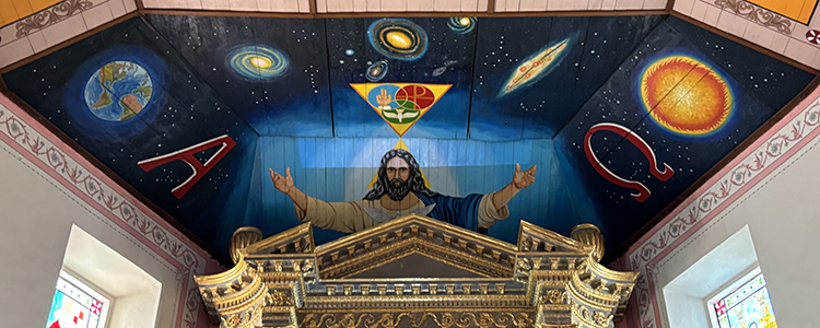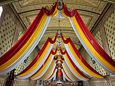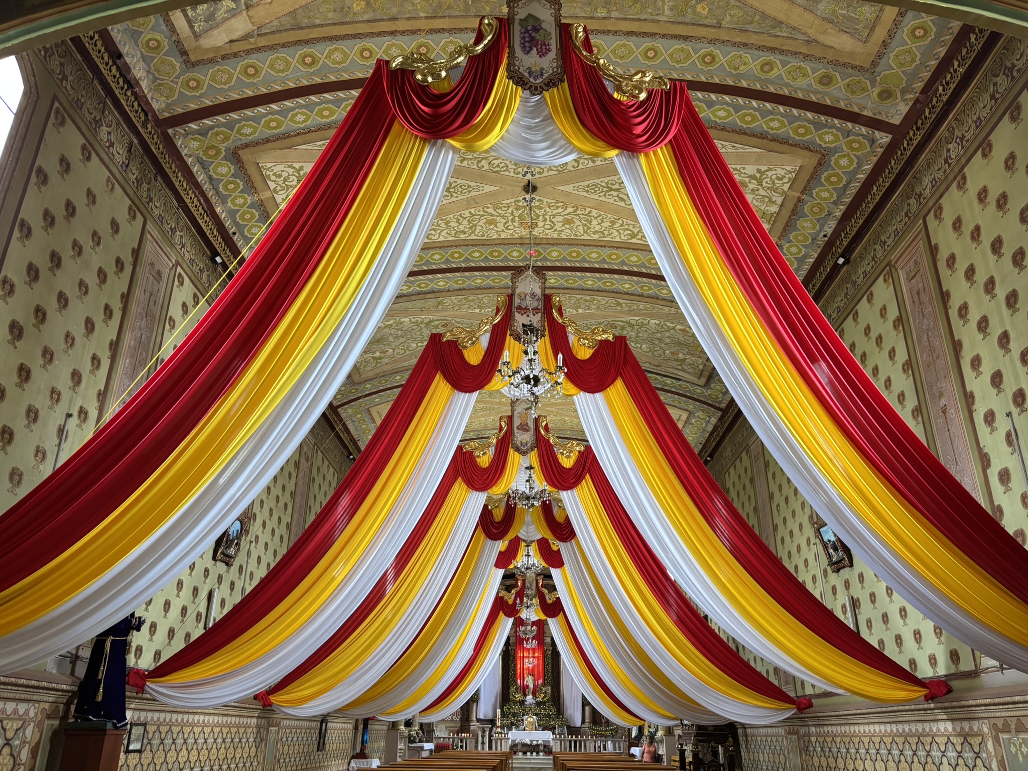 The most striking part were the six large boldly colored draperies hanging from ceiling to either wall. Done in the bright red and yellow of the Michoacán flag, with a stream of white to represent spirit on the inside. The walls had several sections of repeating patterns running the full length of the church, while the ceiling repeated vines and leaves broken into geometric designs. I think it shocked me because it’s such a small town, and to be honest the outside of the church was a touch drab. It really shouldn’t have though. Churches in Mexico, especially in smaller towns tend to be the focal point of social life.
