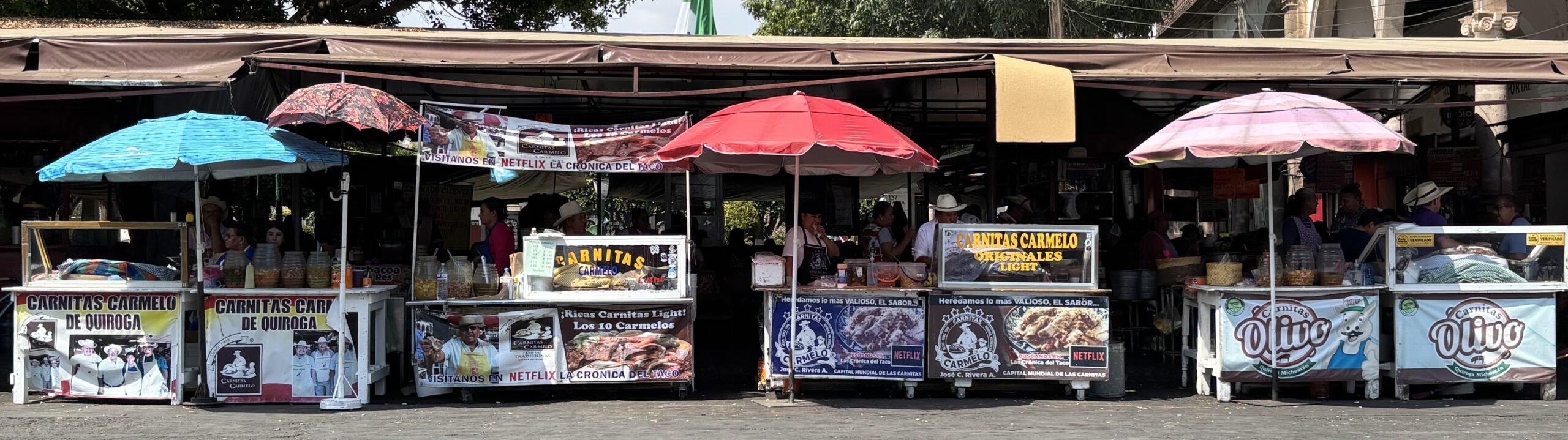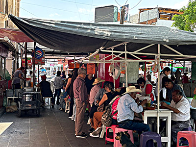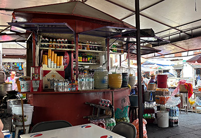 A boy came over from the drink stand, which is a separate business from the meat vendors, but works in conjunction with them. This seems to be a thing that happens often in a lot of these communal vendor areas. Drinks are separate from food, but they all work together to ensure business flows smoothly. When I was in Oaxaca with Gabby, we went to an indoor market that had a “smoke alley” where you order your meats, sit down, then drinks and tortillas are offered to you, but all by different vendors. Everything was à la carte and paid separately. It can be a bit confusing at first, but once you get the process, it makes sense.