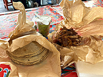 Well Karina decided to tap out after two tacos. I, on the other hand, gladly finished off the rest of that pound of meat. Now, one interesting thing I found in Mexican carnitas versus what I’ve had in the US, there was skin, or chicharrón. Cooked down till it was falling apart, but completely saturated in all the herbs and spices that went into the dish. It ended up being my favorite part. I made sure to get at least a little strip of chicharrón in every taco.