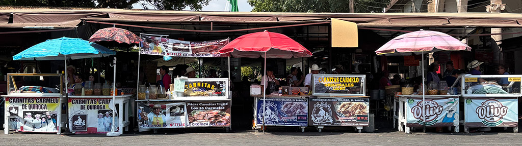 In Quiroga, in the center of town, there is a lineup of carts, tents, and stalls where the food vendors have taken over. It feels like a crowded farmers market filled with cooked meat smells, right up until the first vendor starts shoving a soft tortilla jam packed with carnitas uncomfortably close to your face. My Spanish is still remedial, but I can tell a food sales pitch from a mile away, and this guy was two feet from my person, with the taco inches from my face. For a moment I was put off, but then I realized what I was being prudish about. I mean who cares if this loud sweaty man was in my personal space, he was desperately trying to feed me food that I was desperately wanting to try. I took the taco in hand and bit off half.