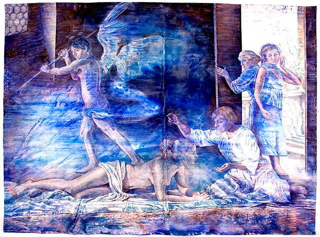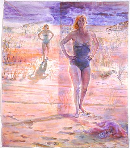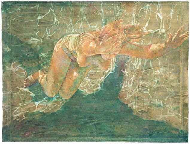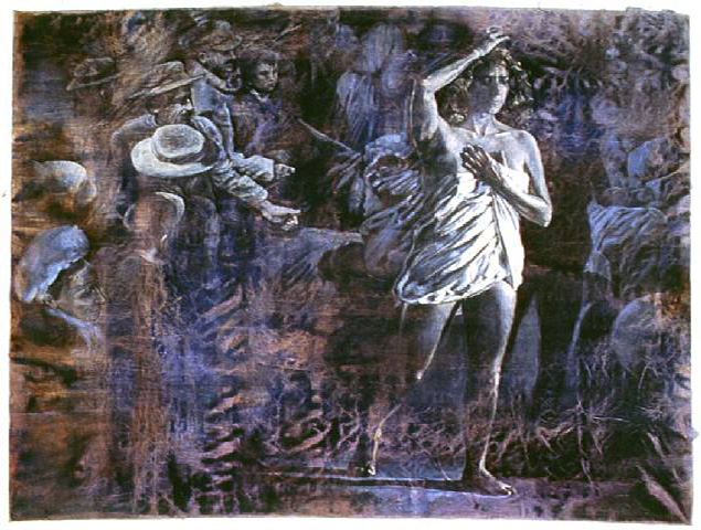The underlying engine of her paintings is passion. Her women are full and glorious, no shredded psyches and emaciated bodies in these paintings! Men and women connect in her world. Rather than minimize or trivialize feeling, she relishes this most human of qualities. It gives her work internal validity for all who see it.
