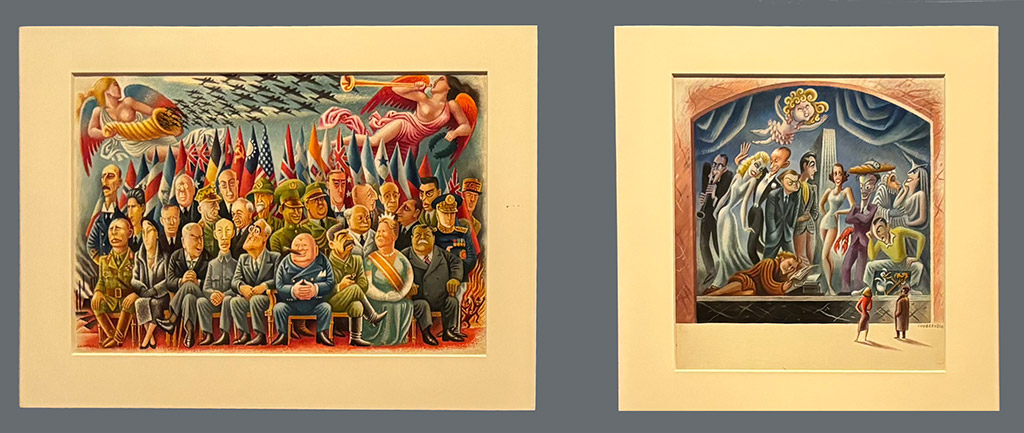 I walked the perimeter first. I looked at some beautiful Art Deco style ink drawings, then a few political caricatures. There didn’t seem to be a stylistic through line to what I was seeing though. Towards the interior there was a whole case of Vanity Fair covers with a singular style to it. For some reason, that clicked something in my brain. I looked down at the little name plates to the right of the paintings. I realized,