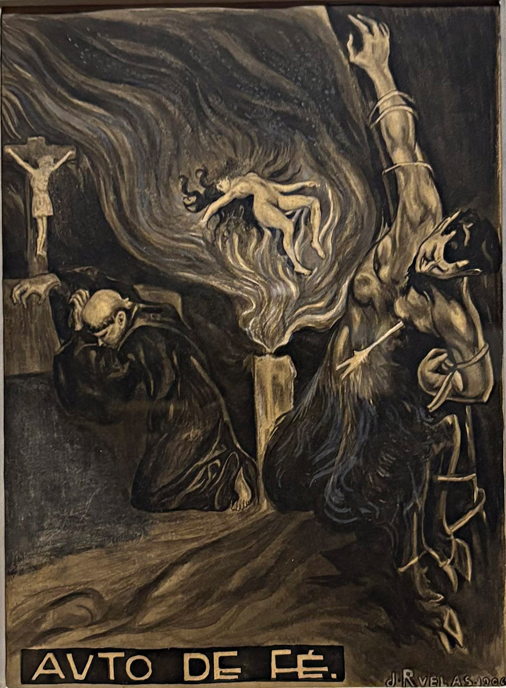 Next I checked out Museo Nacional de Arte, with their “Under the Sign of Saturn” exhibition going on. It examines the influence of the esoteric on Mexican art. The exhibit opens with a small room filled with fantastic and surreal paintings like these. The one to the left is called Auto De Fe, or Act of Faith, showing a priest praying in front of a crucifix with a vaporous