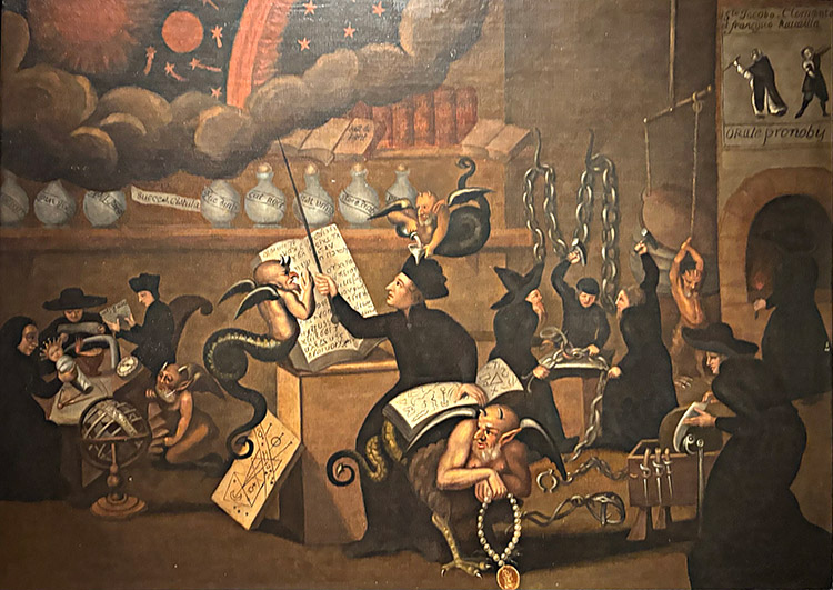 woman floating above a candle, while a demon-like creature in the foreground appears to be mortally wounded. The one to the right is called Allegory of Profane Knowledge, showing the mainstream view of esoteric knowledge, equating it to witchcraft.